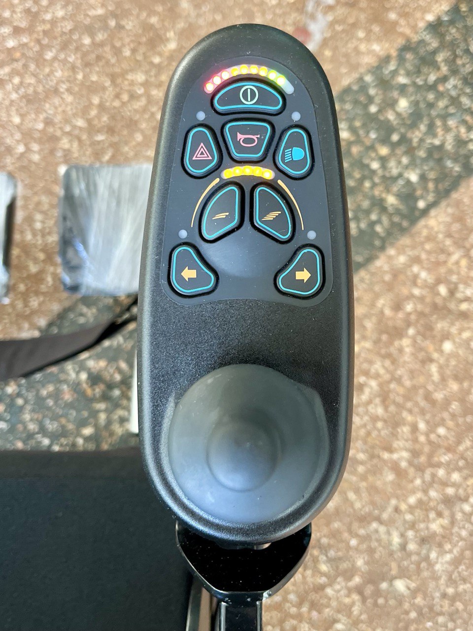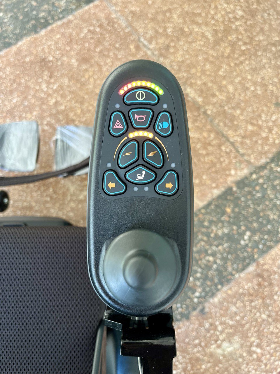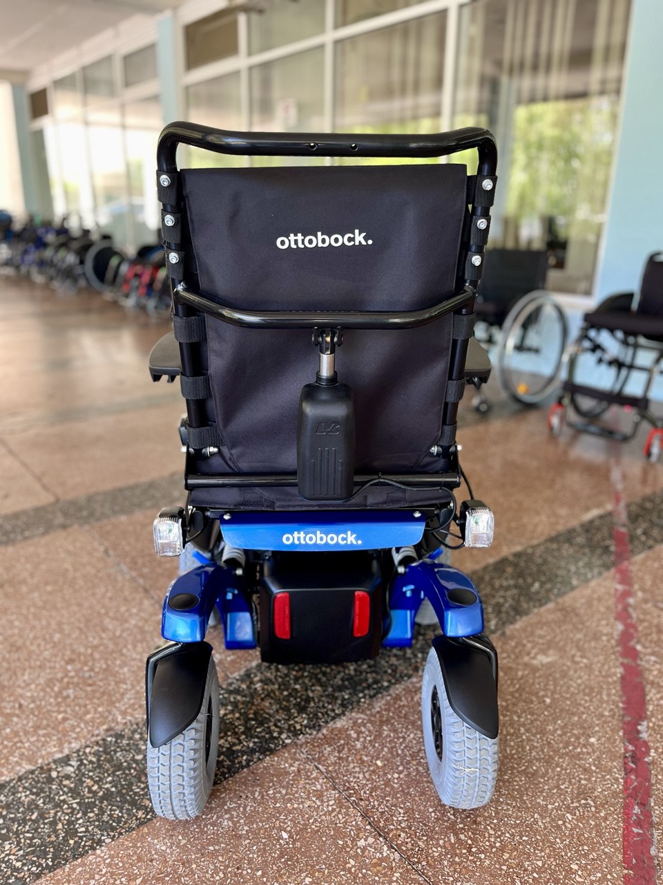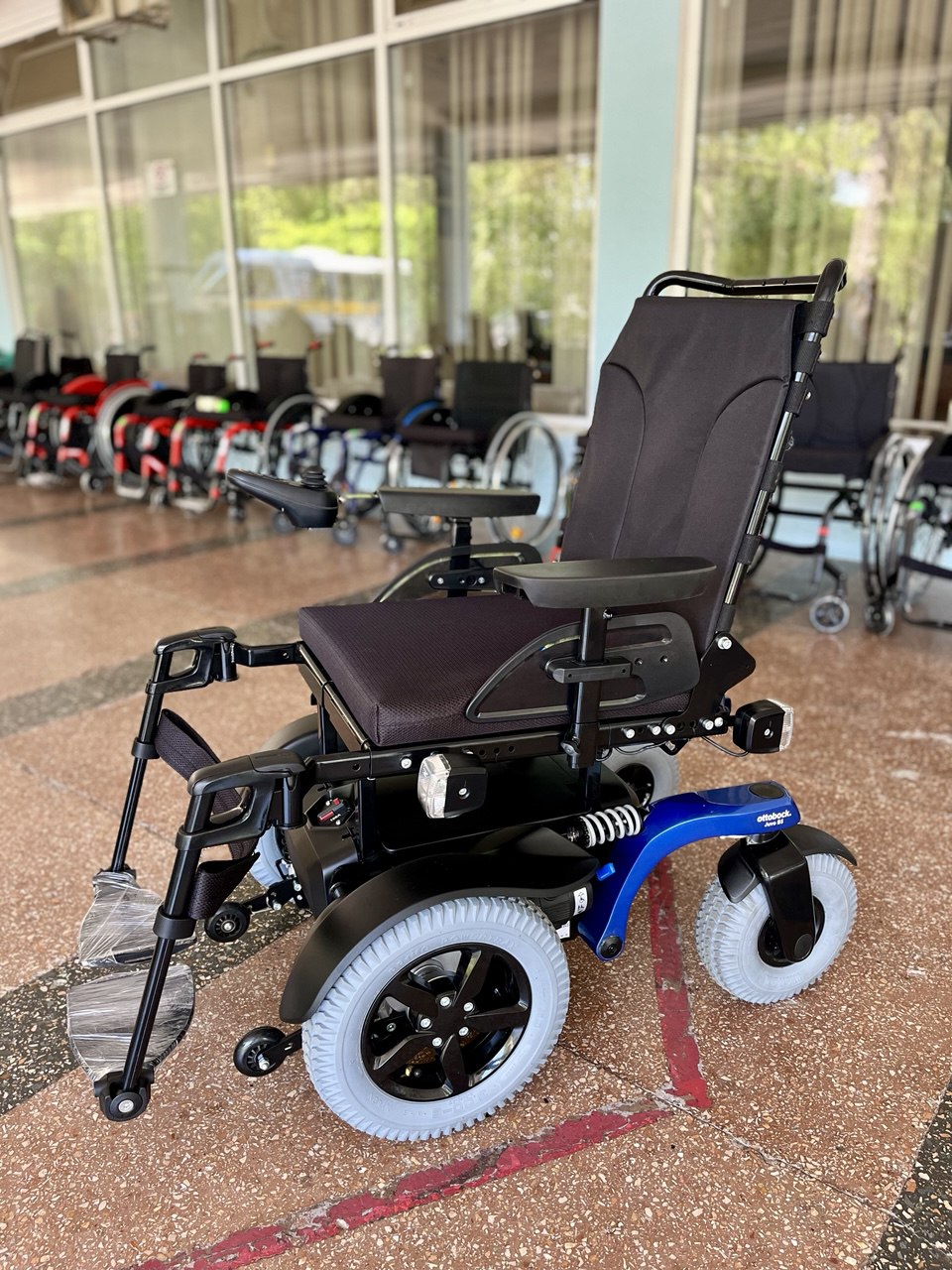 Данная модель оснащена кофром и вместительным багажником под сиденьем, а также двумя крючками на которые при необходимости можно повесить сумку, рюкзак или верхнюю одежду, что делает модель удобной для поездок в магазин. Откидные подлокотники дают возможность человеку с ограниченной подвижностью легко осуществлять посадку и высадку.